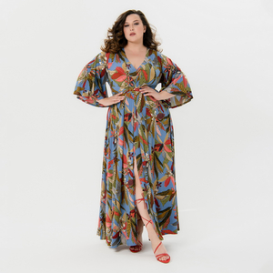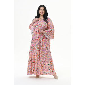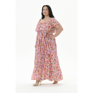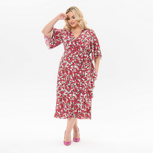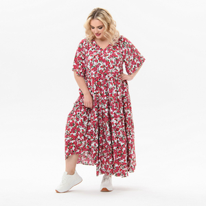 Платье каскадное, с V-вырезом, штапель, принт "розы"
