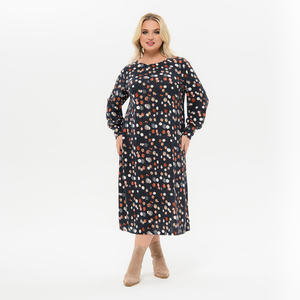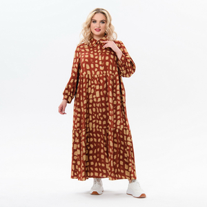 Платье-рубашка каскадное из штапеля, принт "бежевые пятнышки"