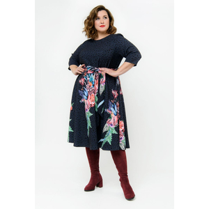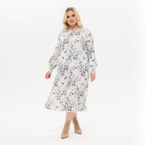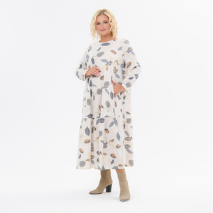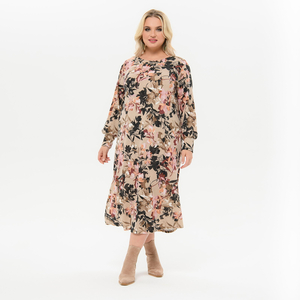 Платье миди А - силуэта, джерси - ангора бежевая, принт цветочный