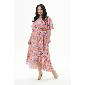 Платье с запАхом и воланом по юбке, штапель, принт "розовый сад"
