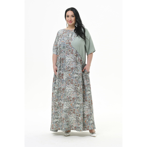 Платье комбинированное из вискозы, принт "универсальный",отделка "мята"