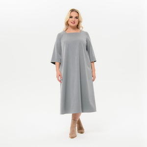 Платье миди с вырезом "каре", из костюмной ткани, цвет "платиново-серый"