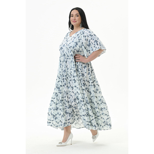Платье каскадное, с V-вырезом, штапель, принт "цветочная дымка"
